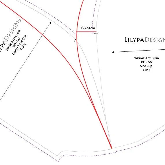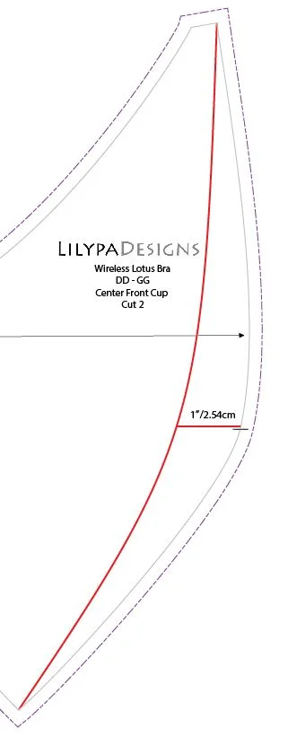 Thus, today’s tutorial is on how to move vertical seams by manipulating the pattern WITHOUT changing the volume. Although the example is based on the Lotus Wireless Bra Pattern, the same techniques can be applied to any vertical seamed bra like the wireless Watson or wired Angie.